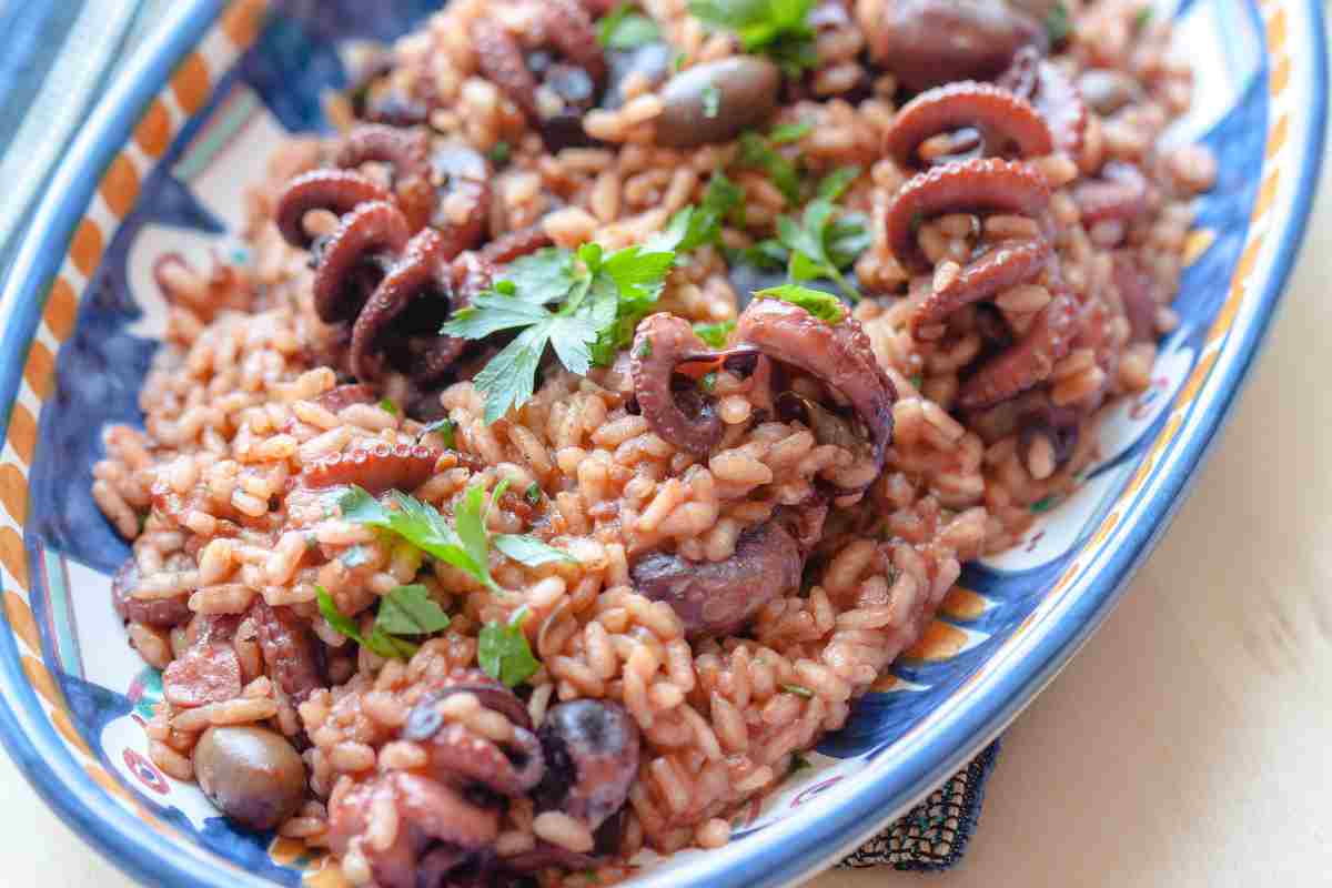 Avrai anche sicuramente già letto come pulire il polpo alla perfezione per evitare brutte sorprese. Forse però non sai che l’acqua che usi per la cottura del mollusco non va necessariamente buttata. Puoi riutilizzare l’acqua di cottura del polpo per preparare piatti gustosi. Il primo che ci viene in mente è il risotto. Di seguito trovi la ricetta per due persone. Per quattro, invece, raddoppia le dosi.
