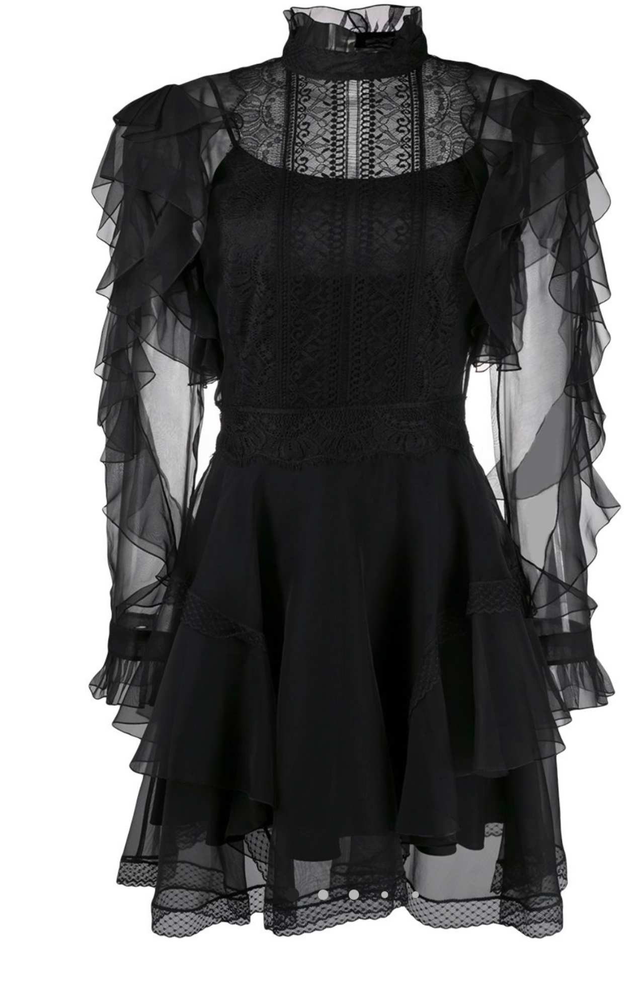 Di questo tema vi avevo parlato in occasione dei consigli su come valorizzare un seno piccolo e vi ricordo che è una delle soluzioni più semplici ed efficaci. L’ultima proposta è firmata Alberta Ferretti, si tratta di un abito corto con collo alto, inserti semi-trasparenti e dettagli in pizzo a fiori su gonna skater. Allure sexy per un capo che in realtà lascia scoperte solo le gambe. Da abbinare ad un tacco stratosferico per avere l’effetto “wow”. Il costo è di 1436 euro (già scontato).