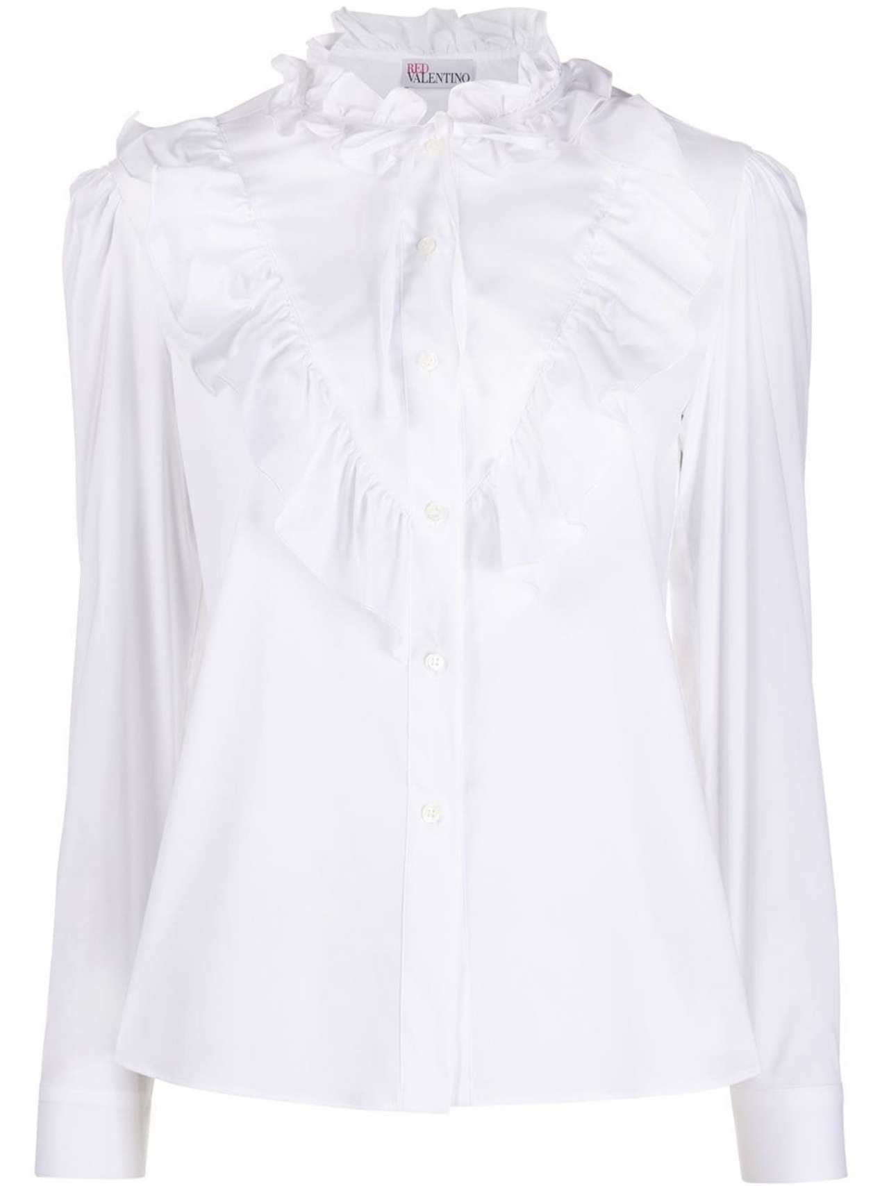 Dei cinque modi di indossare una camicia bianca vi abbiamo parlato qui, per oggi l’idea è quella di RED Valentino. Colletto con increspature, chiusura frontale adornata da un elegante fiocco collegiale, in cotone, è perfetta anche sotto un pull con scollo a v. Da ieri è disponibile a 193 euro. Questo tipo di lavorazione è ottima per aumentare forme scarse o per camuffare arrotondamenti post festività.