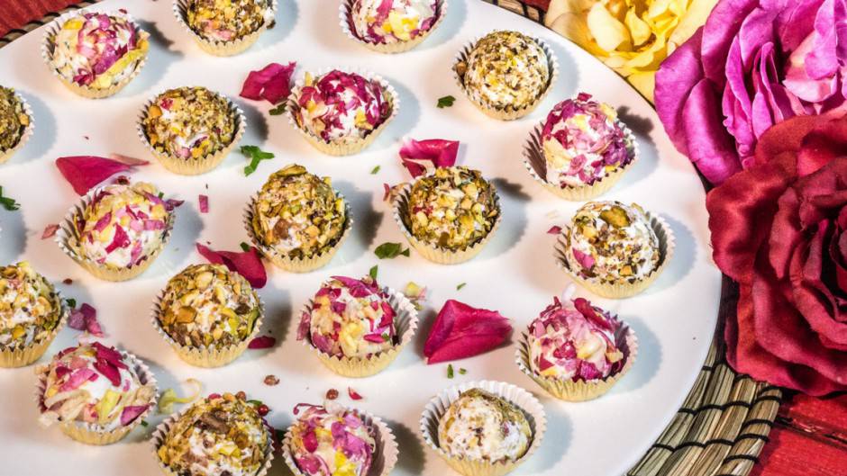 Video ricetta: palline di formaggio con pistacchi e rosa