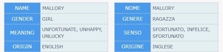 Mellory ha una storia più o meno simile: venne scelto da Mamma Daniela ed è molto diffuso in Brasile. Anche questo nome ha legami con la lingua inglese, dato che deriva dal più diffuso nome Mallory.