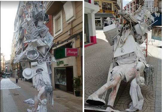 L’opera effimera è stata allestita in una strada a Torrelavega, in Spagna, dal gruppo culturale “Asociacion Cultural Octubre” lo scorso giugno. Questo gruppo locale dedica le sue energie allo sviluppo di varie attività culturali e invita a fare delle riflessioni mostrando delle creazioni davvero originali, come questa che rende omaggio a tutte le donne che lavorano e compiono questi faticosi compiti quotidiani per il benessere della loro famiglia.