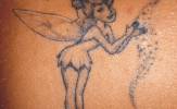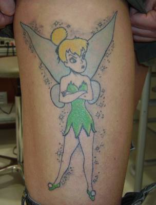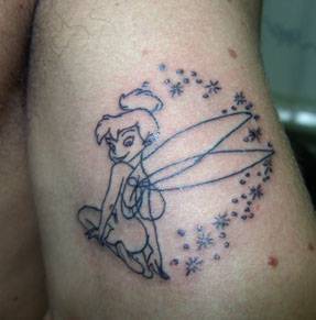 Il tatuaggio della simpatica fatina di Peter Pan -Chi di noi non ha mai sognato di volare verso l’isola che non c’è e svolazzare accanto a Peter Pan nei panni di Trilly? La celebre fatina ha infatti da sempre attirato le simpatie di ogni bambina e molte, una volta diventate grande, hanno preso la decisione di tatuarci il suo simpatico volto sulla propria pelle. Come tatuaggio ovviamente non ha un significato in se, rappresenta nel cartone animato la dolcezza e la fantasia, ma quello che ognuno decide di attribuirgli. Si tratta sicuramente di un tatuaggio dolce, simpatico, glamour e tra i più amati e realizzati dal mondo di Walt Disney.