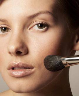 Cipria: spolverare il viso con un tamponcino e cipria, serve per togliere la lucidità dal volto, dovuta al sebo sottocutaneo. Importante è farsi consigliare dalla propria estetista, o dalle venditrici nelle profumerie, la tonalità che fa per noi.