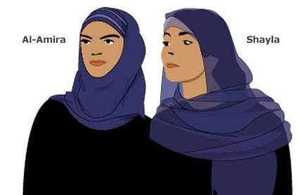 L’al-amira, in arabo “sciarpa della principessa”, è un velo formato da due pezzi: un copricapo che nasconde i capelli e una sciarpa tubolare che copre il collo, lunga fino alle spalle.