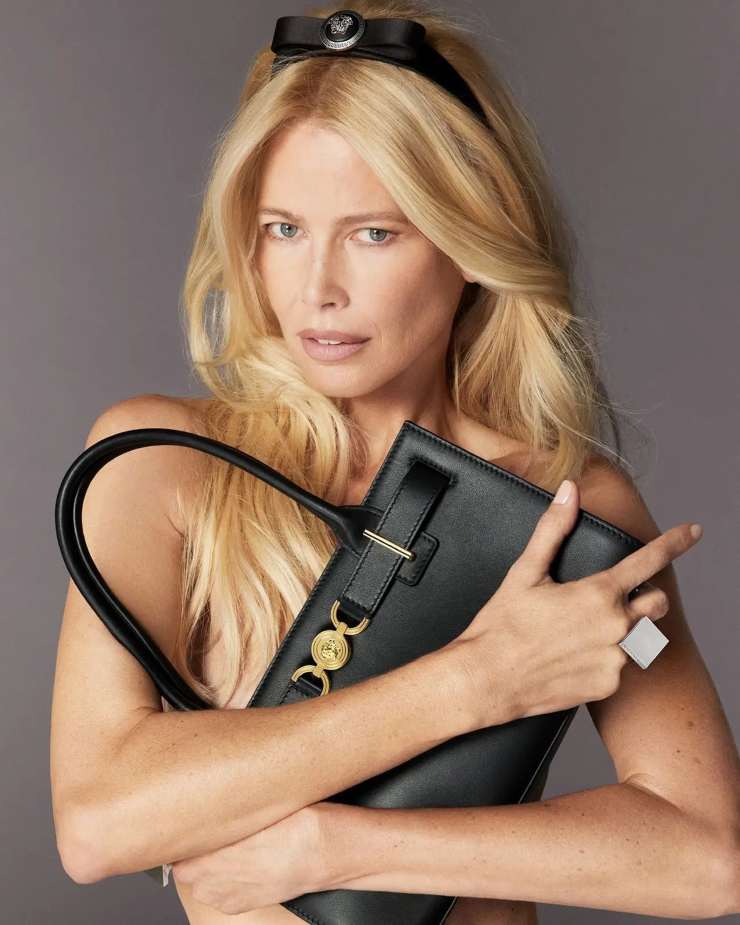 La campagna ruota attorno al debutto delle nuove borse Medusa ’95, una tote e una borsa a mano impreziosite dall’iconico scudo Medusa del marchio. Claudia Schiffer le sfoggia con disinvoltura, dimostrando come questi accessori di tendenza sappiano fondere magistralmente tradizione e stile contemporaneo.