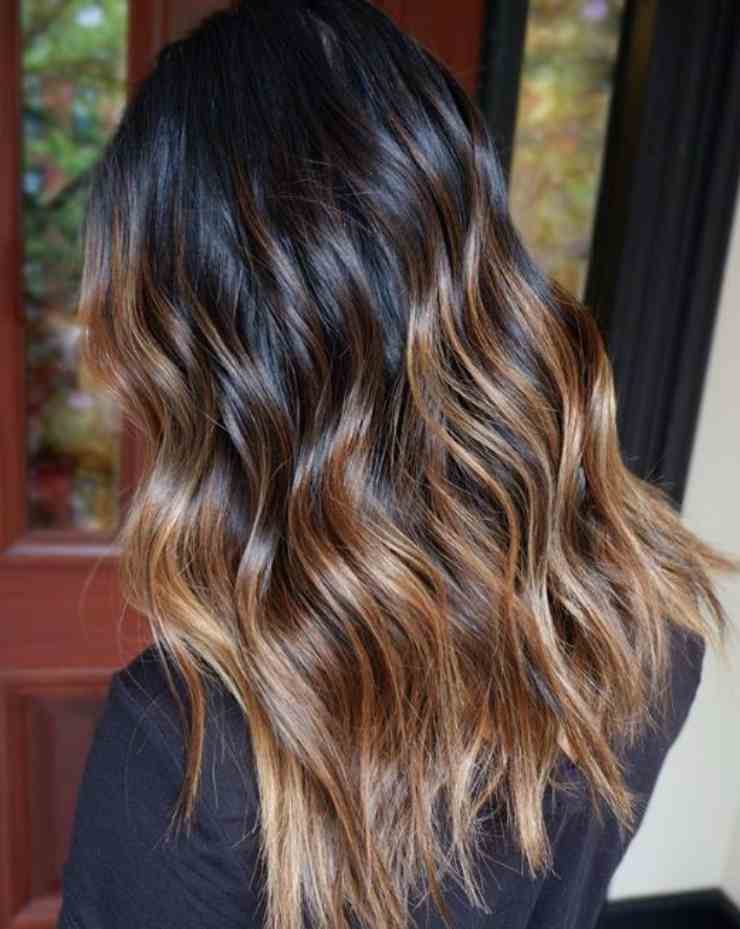 Se avete i capelli neri lunghi, pensate di aggiungere dei colpi di sole per dare molta consistenza ed enfatizzare la vostra bella chioma a strati. Inoltre, per un look più lucido e glamour, potete usare un ferro conico per creare dei bellissimi ricci.