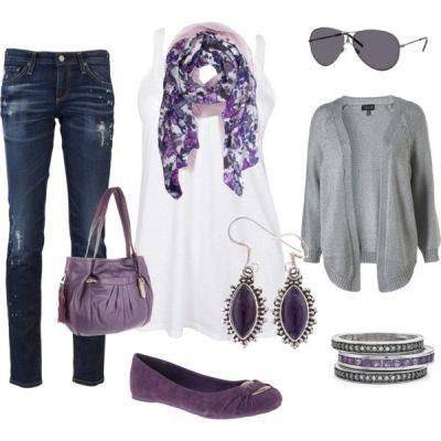 Il viola nelle sue sfumature è il filo conduttore del nostro look ed ecco dunque che gli accessori (scarpe, borsa, orecchini, bracciali) si tingono di questo colore.