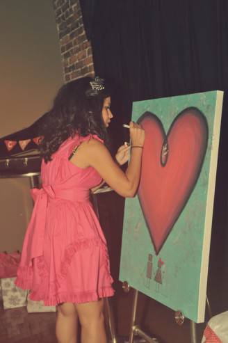 3 Il nostro amore è un’opera d’arte! -> Sempre per rimanere in tema “guest book/wall” creativi ecco un’ idea per chi tra voi ha un animo artistico e giocoso. Un’idea sfiziosa ed originale può essere quella di creare un piccolo angolo dell’arte all’interno della sala del ricevimento. Posizionando una tela bianca, pennelli e colori o pennarelli, permettete agli ospiti di decorare e creare un’opera d’arte che rappresenti il vostro amore. Il risultato sarà stupefacente e potrà essere un bellissimo ricordo da appendere in casa.