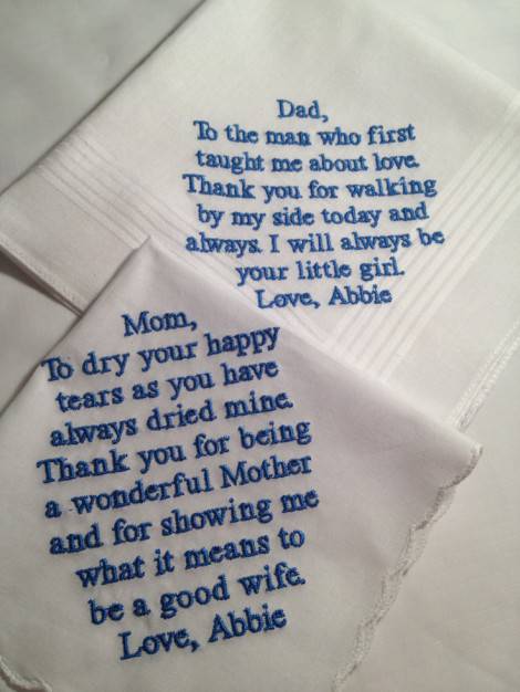 Basta un piccolo gesto, un fazzoletto con una dedica sincera e affettuosa, a rendere la tua giornata ancor più speciale. Fai questo piccolo bellissimo regalo ai tuoi genitori.